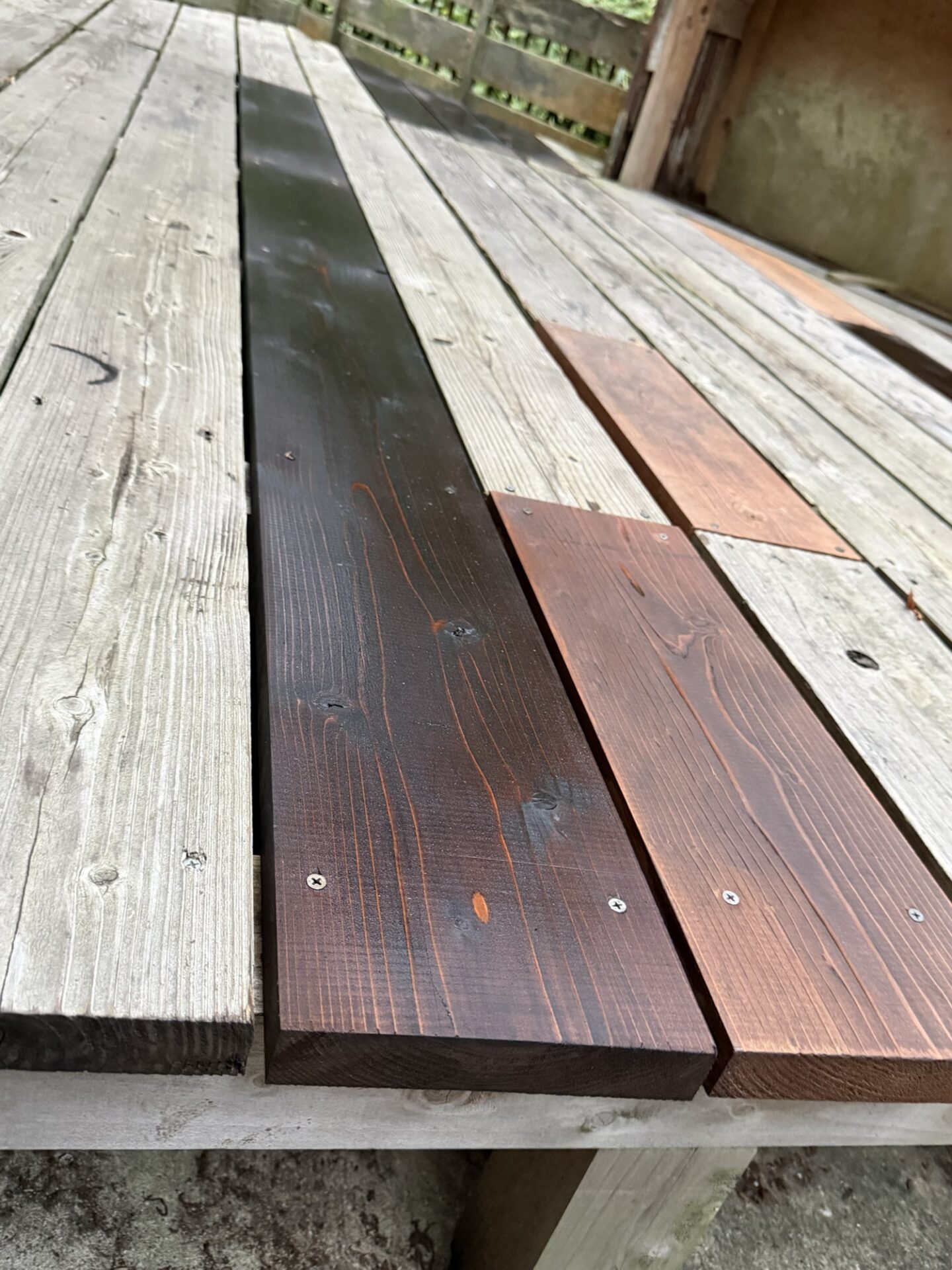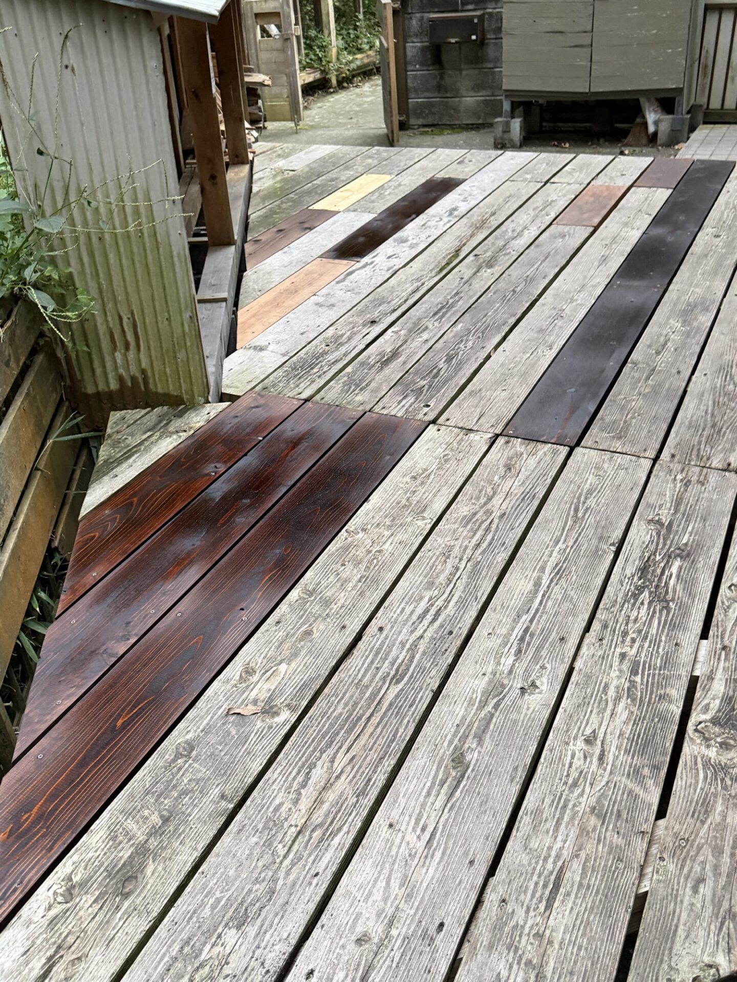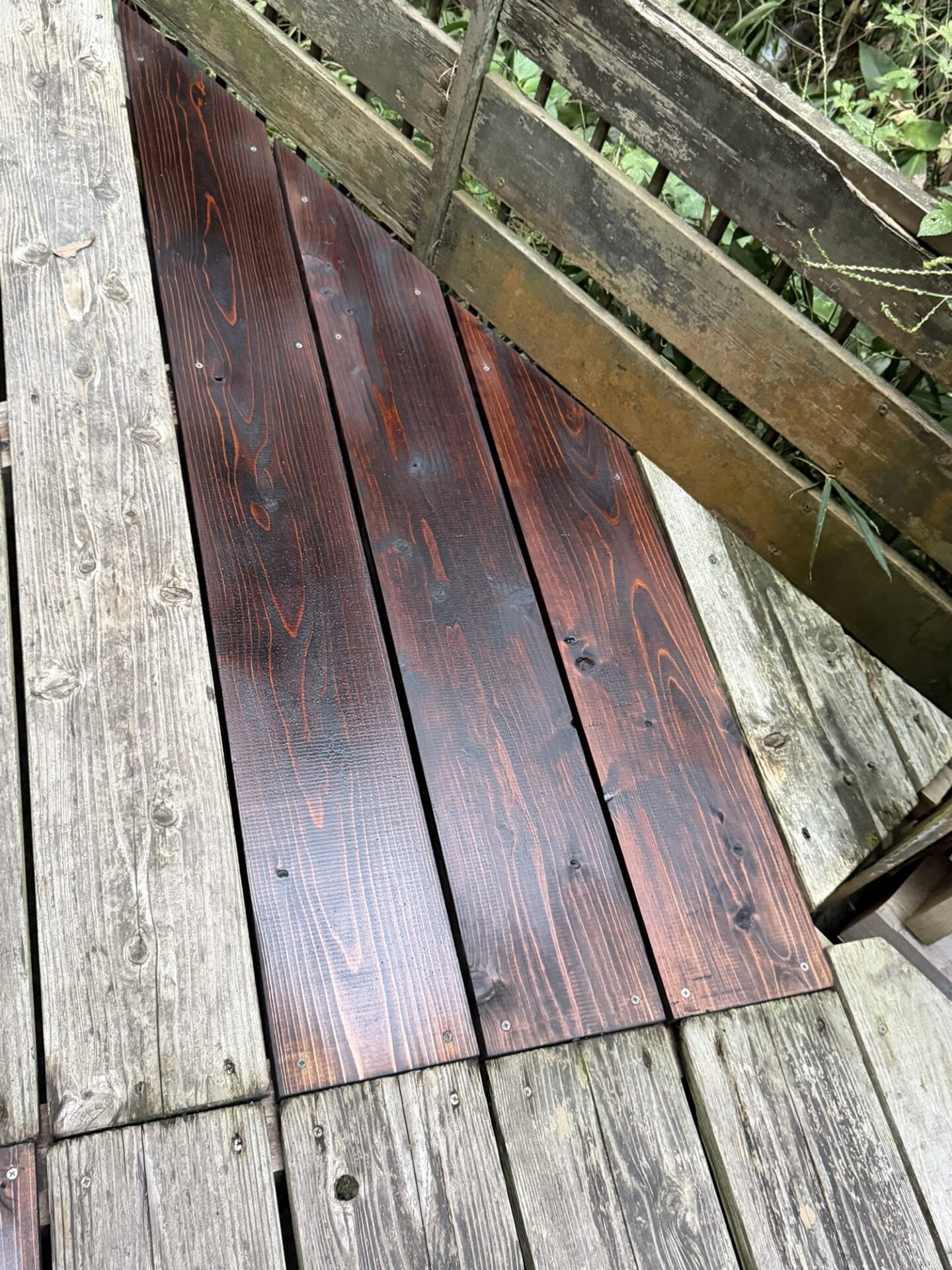 防腐剤を塗ります。油性で、二度塗り、乾燥に3時間。完全乾燥に24時間でした。