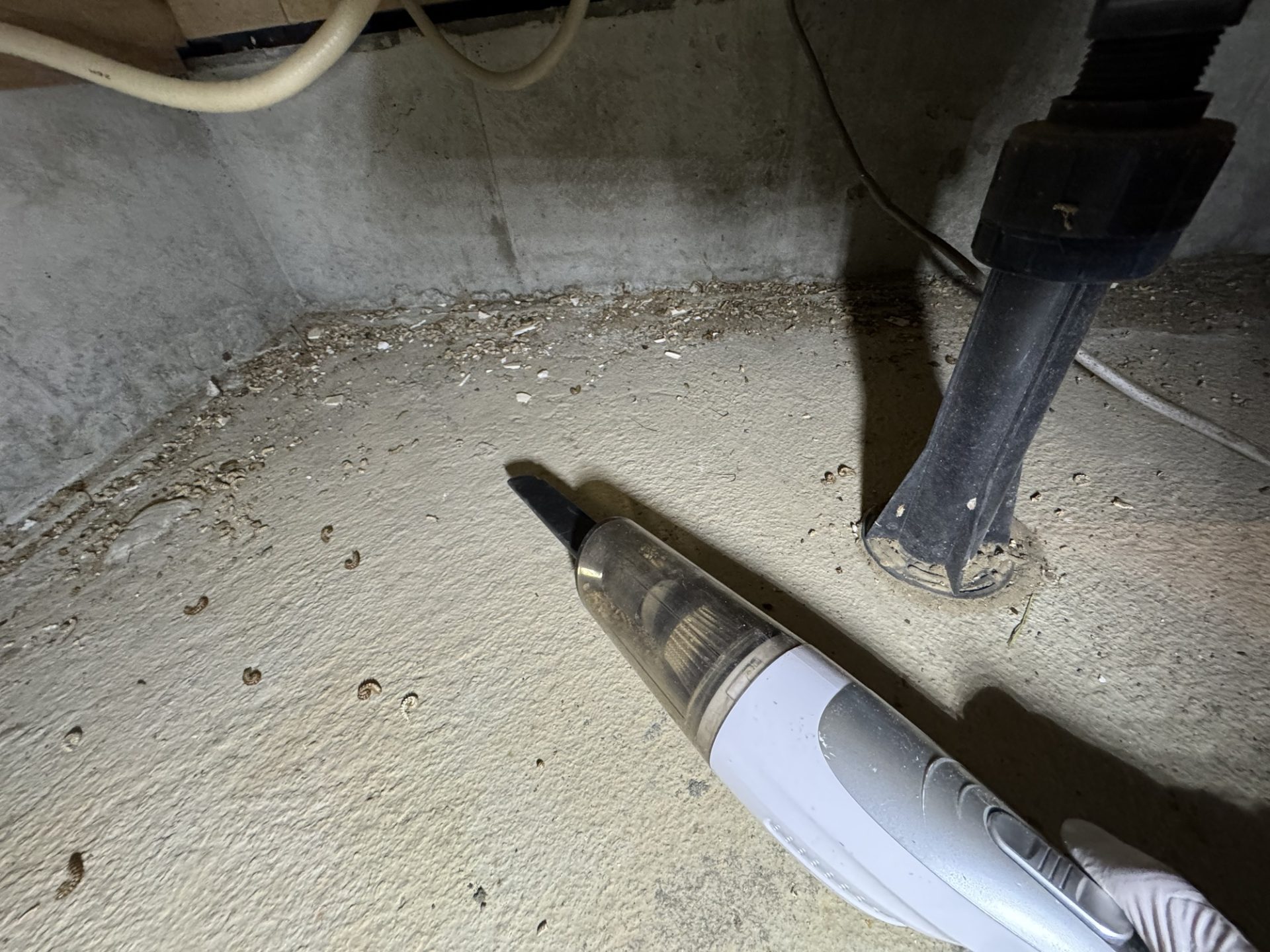 そして、前々からやりたかったけど、なかなか気持ちが乗らなくてできなかった床下に潜ってヤスデの状況を見ることをしました。