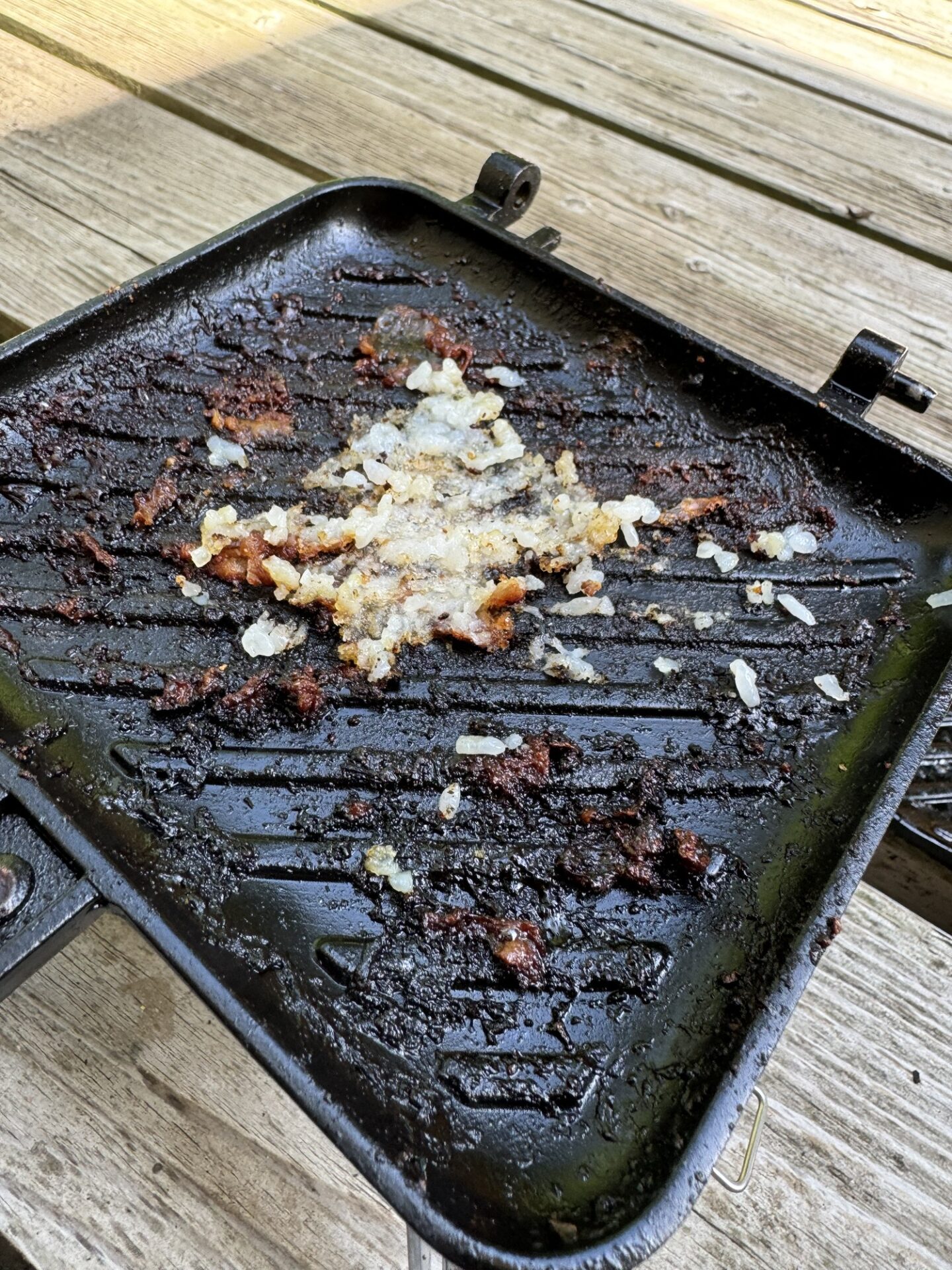 おにぎりを焼きおにぎりにして食べようとしましたが、引っ付きまくりました。