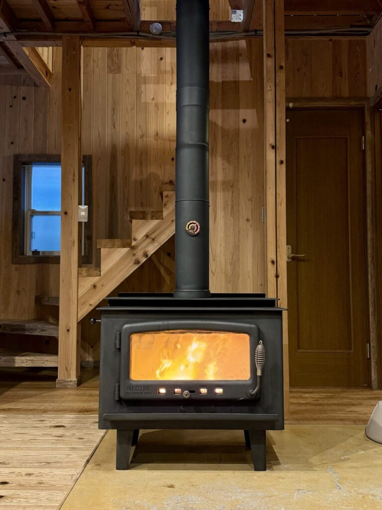 風化がはじまってしまった木材を薪ストーブで燃やします。