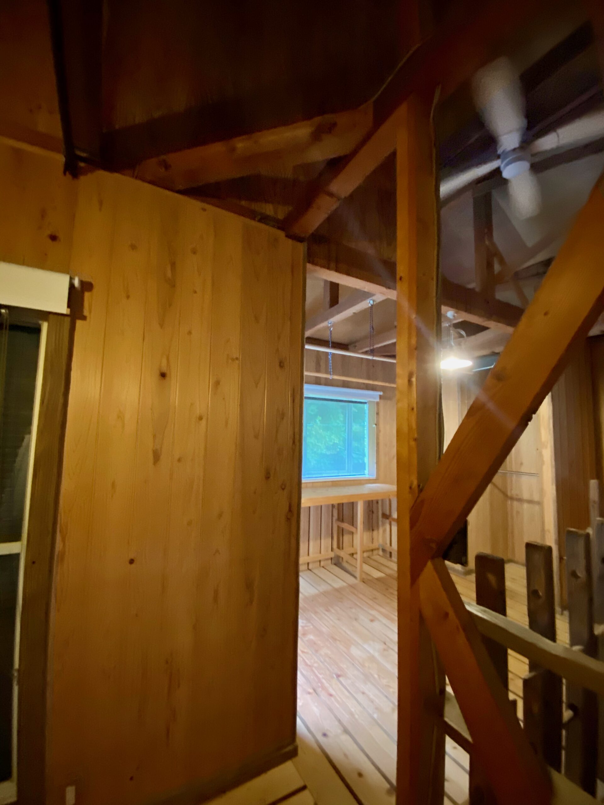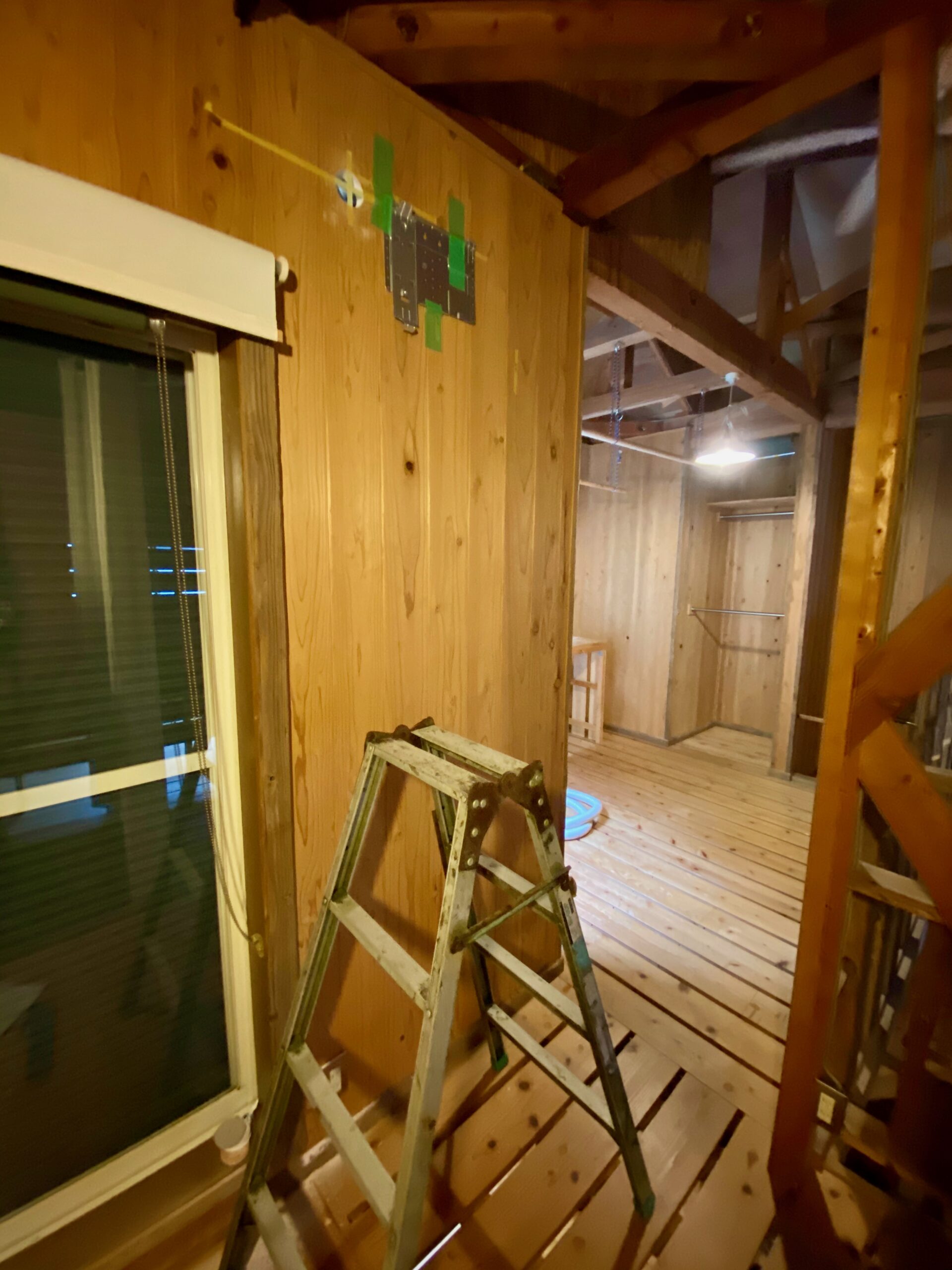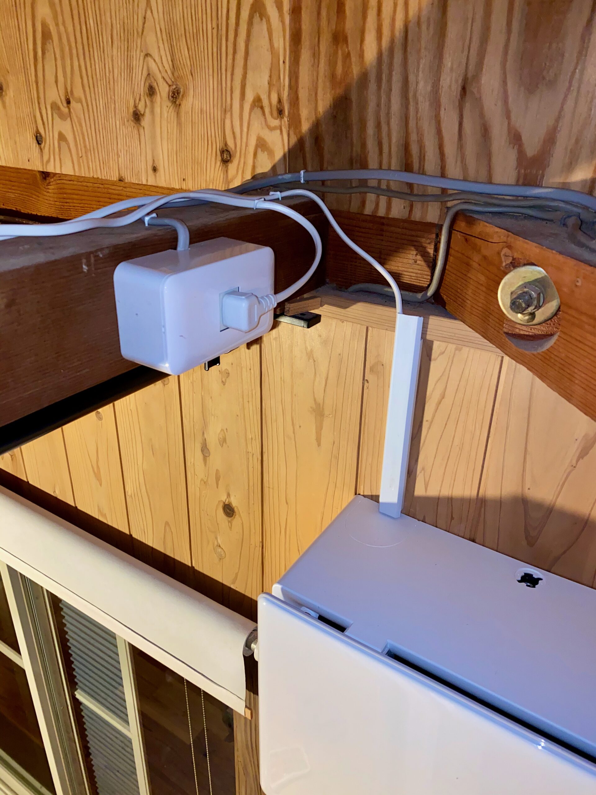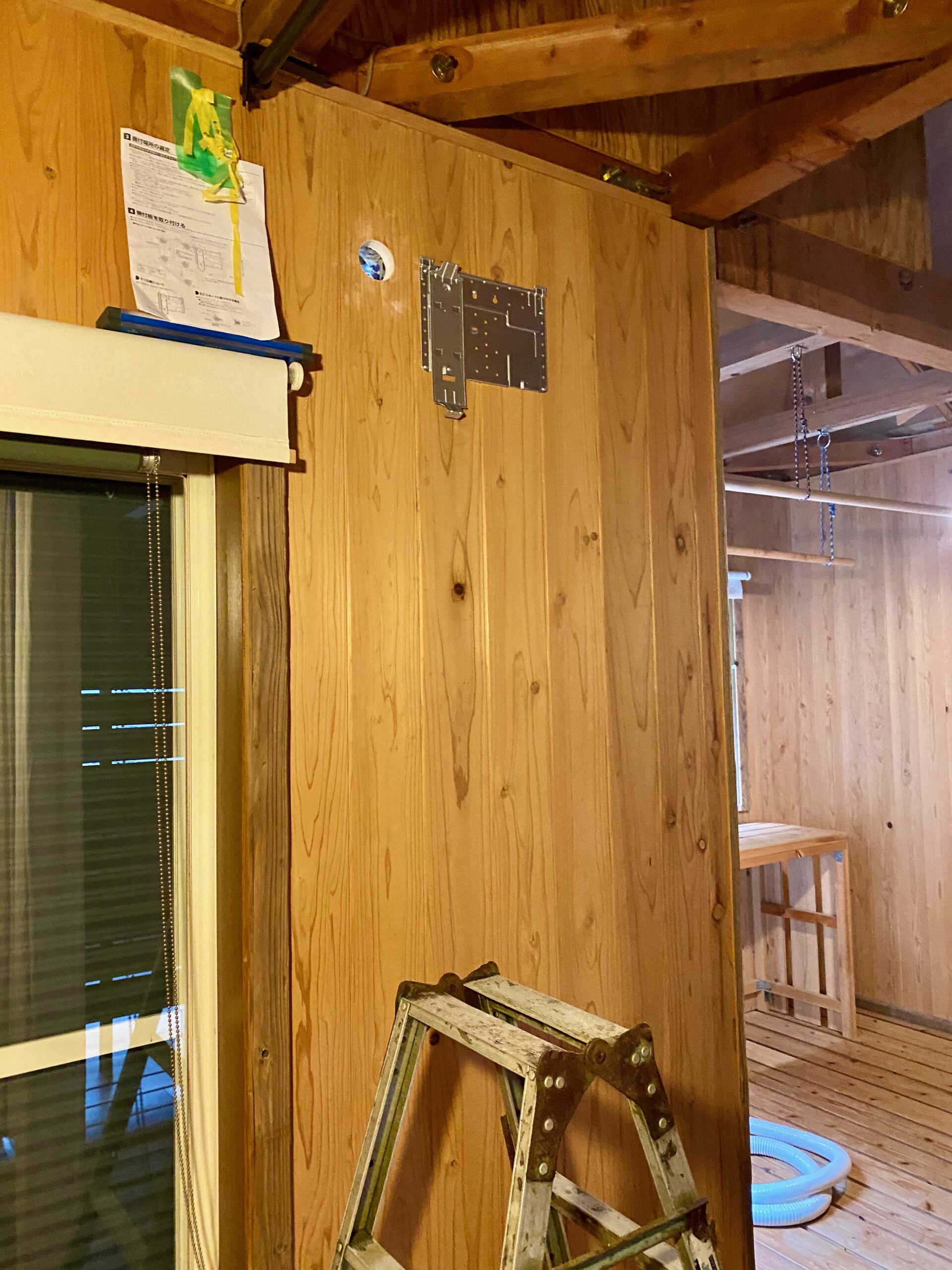 カライエの取り付け場所を見繕います。外側からの作業もあるのでバルコニーに出せるところへ。