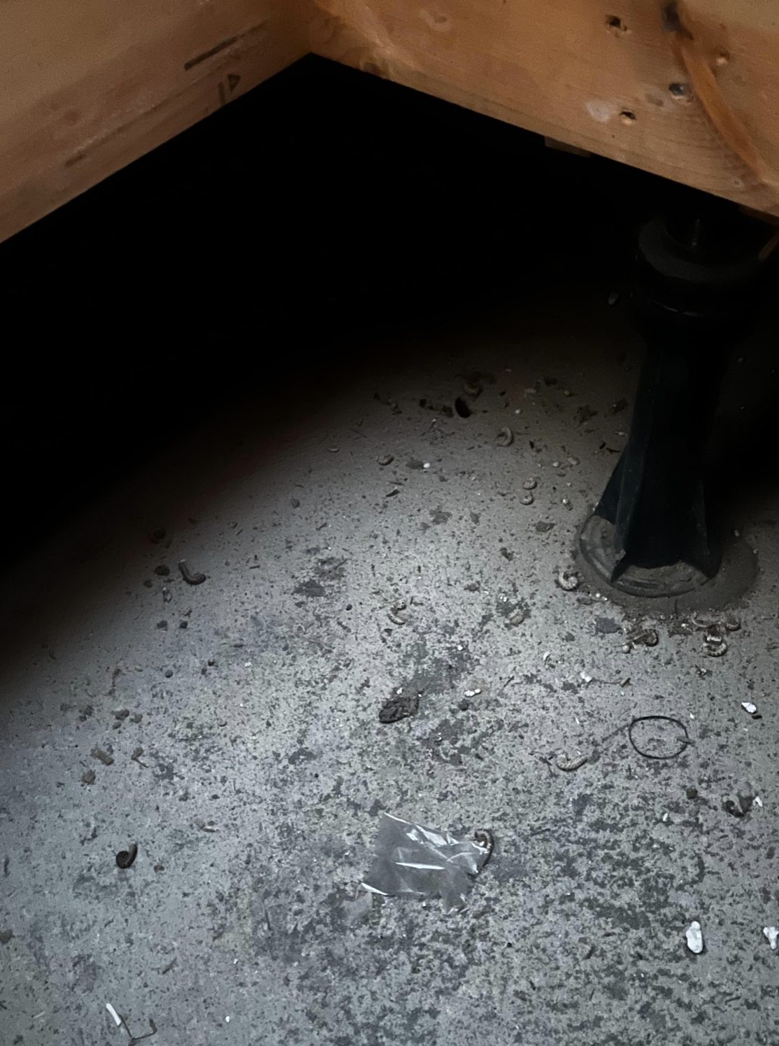 床下点検口から確認したところ、多数のヤスデの死骸が確認されました。