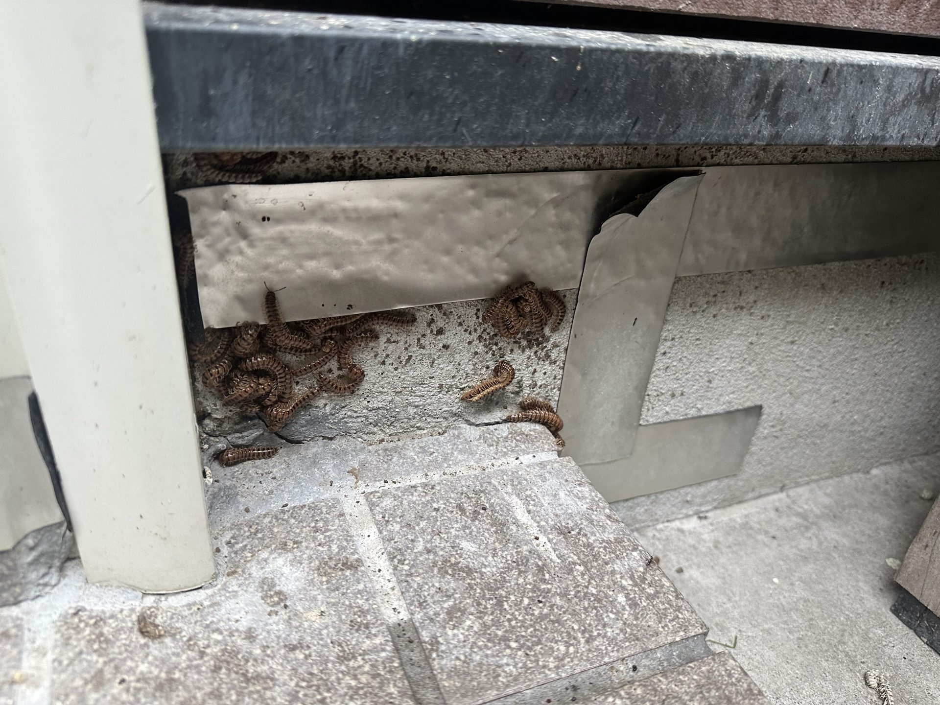 そして、なぜかアルミテープを貼ってあって到達できないところにヤスデが集団でいる。なぞ。