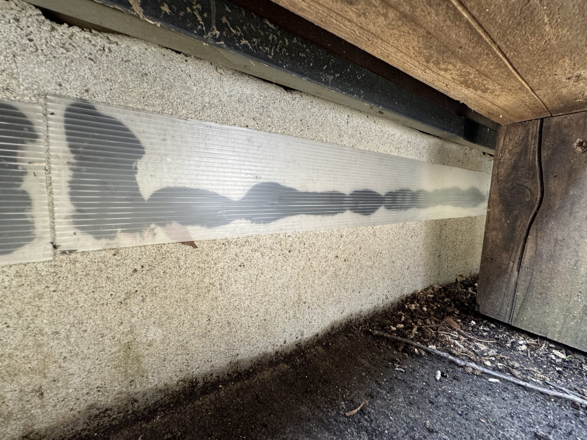 プラ段を家の基礎に貼ることを半年近く前に行いました。シリコンボンドで貼り付けるだけで接着力が十分ありそうなので今回は家の基礎、外周全てに施工しました。