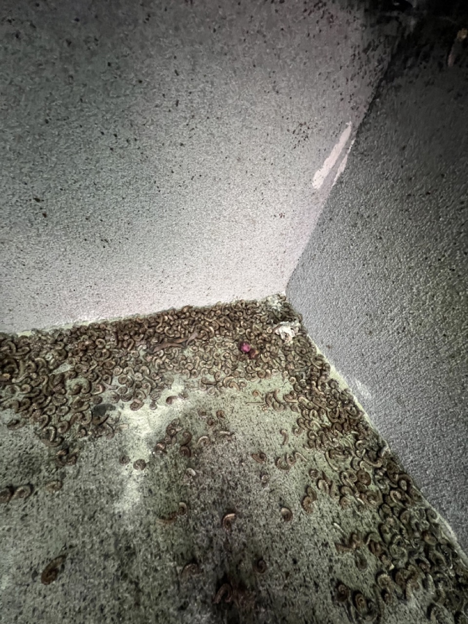 浴室にも多数発生しています。排水口周辺の湿った環境を好むようです。