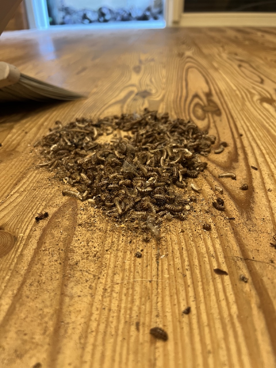 足の踏み場がない状態だったため、LDKのヤスデの死骸を1箇所に集めました。