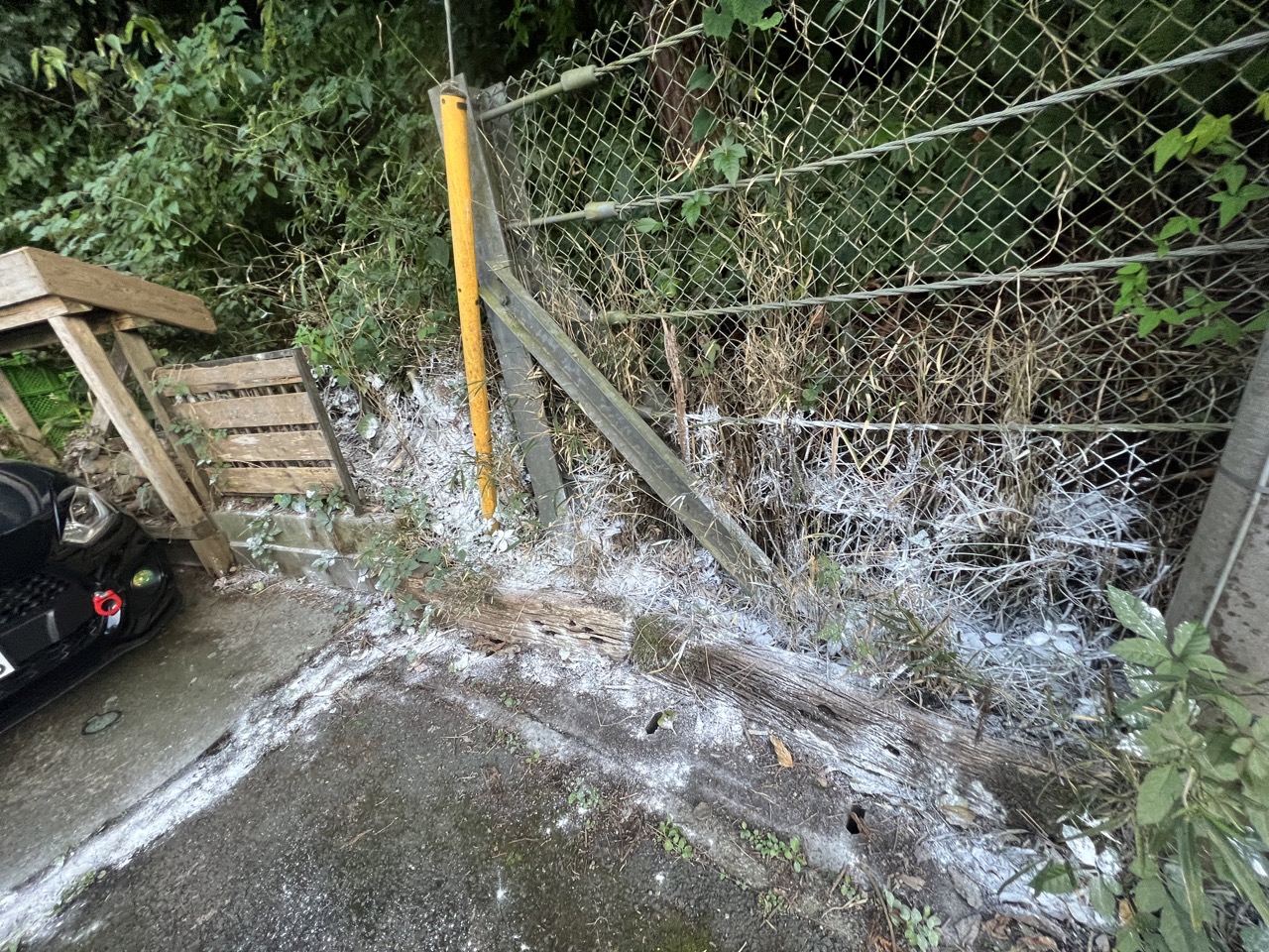 土のある箇所に消石灰を散布しました。20kgを1袋使用しました。